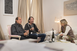 Manfred Bockelmann: Als ich Peter als Vortragenden bei den Carinthischen Dialogen gehört habe, ist mir sofort diese Freiheit des Denkens aufgefallen, unabhängig davon, ob das jetzt hundertprozentig in das Milieu hineinpasst oder nicht, was teilweise auch an den Reaktionen des Publikums abzulesen war. Das hat mir ungemein gefallen. Ich bin ein harmoniesüchtiger Mensch, das ist mir leider mitgegeben, vielleicht durch die Erziehung oder ich glaube eher durch Ängste, die ich mein ganzes Leben hatte. Vielleicht bin ich auch deshalb Künstler geworden, um diese Ängste loszuwerden. Nun einem Menschen zuzuhören, der gerade heraus sagt, was er denkt, hat mir enorm imponiert. Abgesehen davon war die gegenseitige Sympathie vom ersten Moment an da.